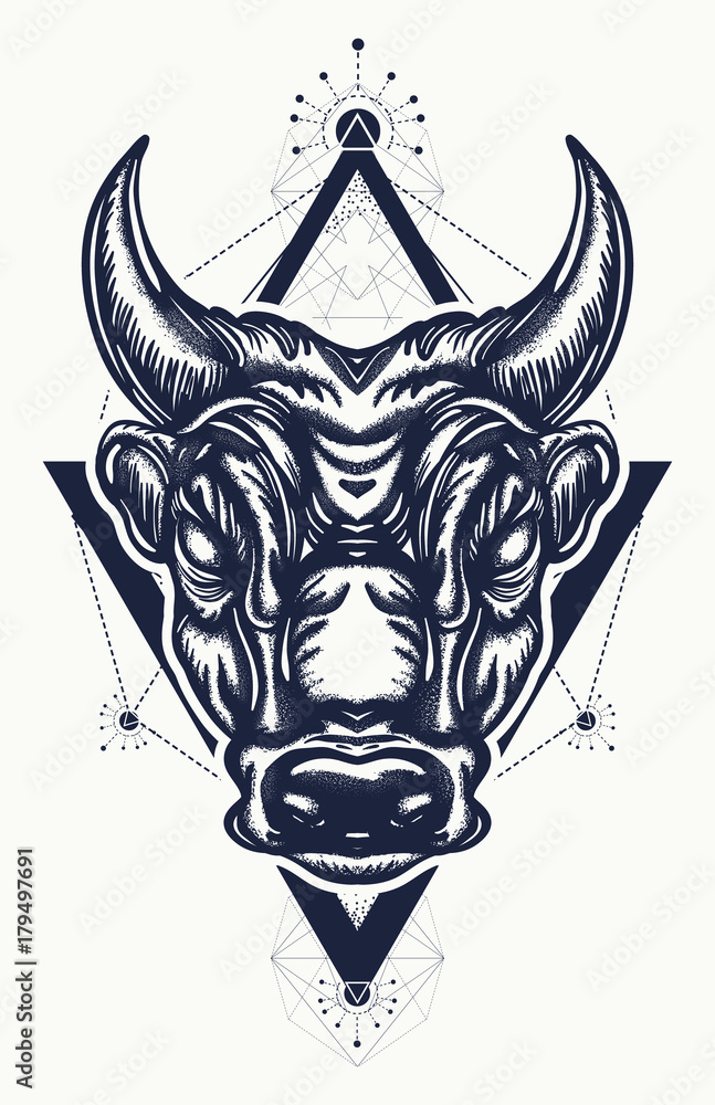 Bull Tattoo And T Shirt Design Ancient Rome And Ancient Greece Concept War T Shirt Design Minotaur Symbol Of Bravery Fight Hero Army Bull Tattoo Art Stock Vektorgrafik Adobe Stock